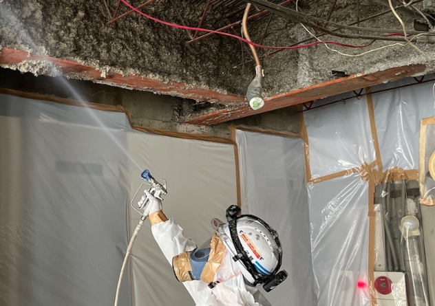 具体的には、吹付けアスベストを下地から取り除く除去工法や、薬液を塗布・浸透させて飛散を防ぐ封入工法などを行うことです。