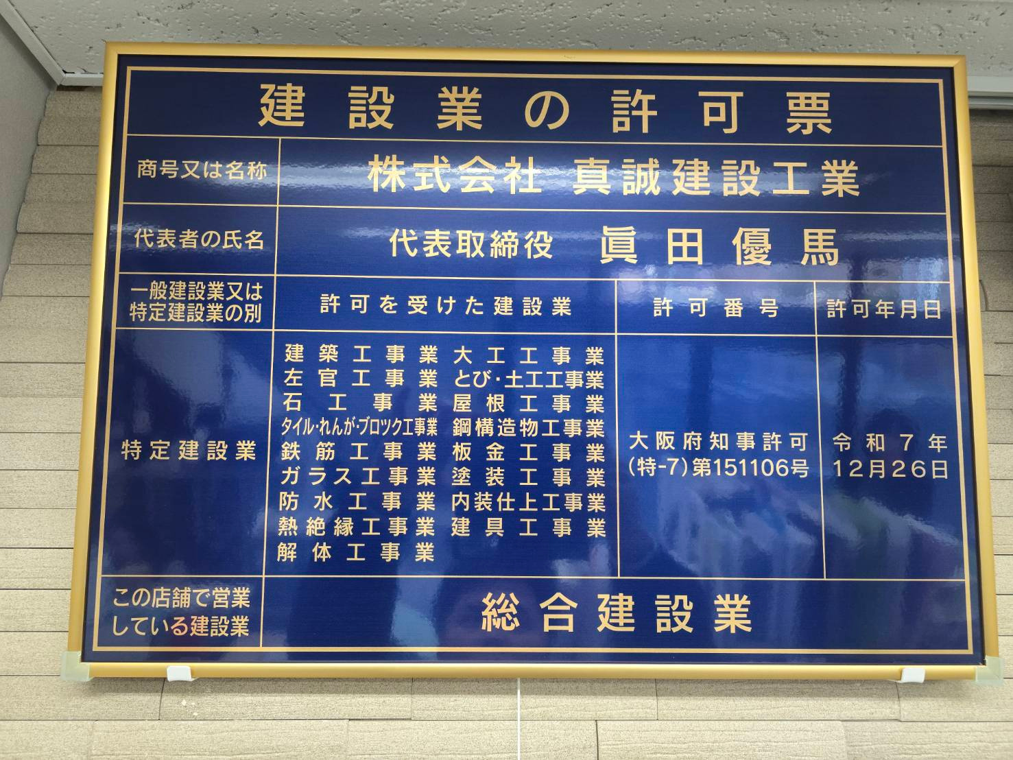 特定建設業許可 大阪府知事許可(特-7)第151106号